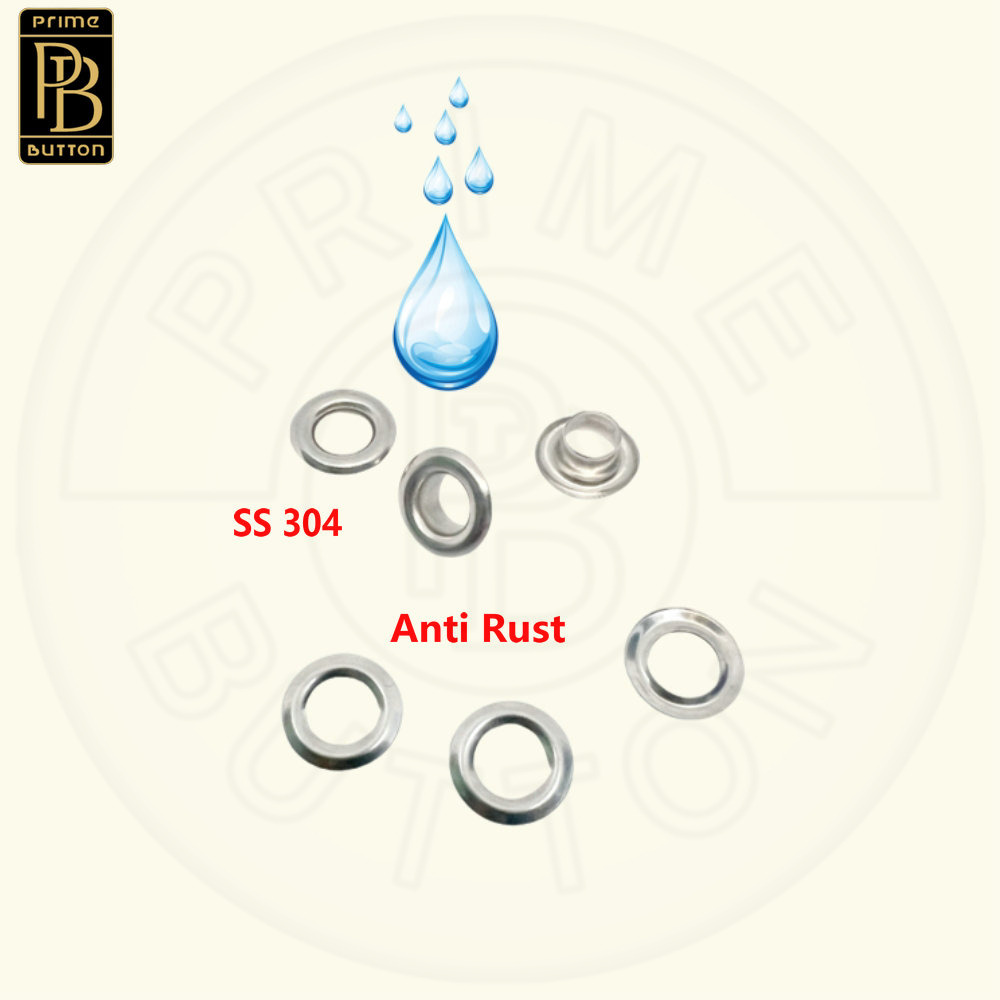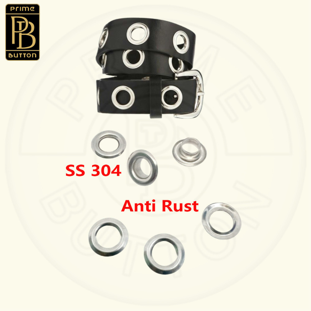 Ojales metálicos PRIME BUTTON, pueden estar hechos de hierro, acero inoxidable 201 y 304 y materiales de latón. Hay diferentes formas de ojales y arandelas a juego, aunque la forma más común es la redonda.